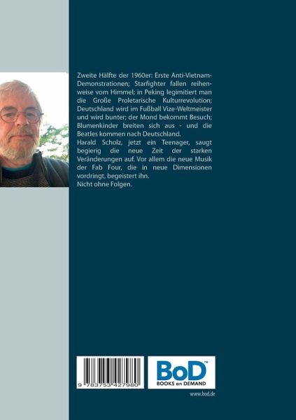 Zweite Hälfte der 1960er: Erste Anti-Vietnam-Demonstrationen; Starfighter fallen reihenweise vom Himmel; in Peking legimitiert man die Große Proletarische Kulturrevolution; Deutschland wird im Fußball Vize-Weltmeister und wird bunter; der Mond bekommt Besuch; Blumenkinder breiten sich aus - und die Beatles kommen nach Deutschland.Harald Scholz, jetzt ein Teenager, saugt begierig die neue Zeit der starken Veränderungen auf. Vor allem die neue Musik der Fab Four, die in neue Dimensionen vordringt, begeistert ihn.Nicht ohne Folgen.