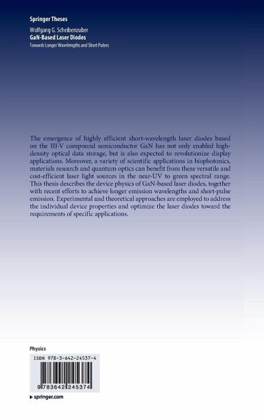 The emergence of highly efficient short-wavelength laser diodes based on the III-V compound semiconductor GaN has not only enabled high-density optical data storage, but is also expected to revolutionize display applications. Moreover, a variety of scientific applications in biophotonics, material research and quantum optics can benefit from these versatile and cost-efficient laser light sources in the near-UV to green spectral range. This thesis describes the device physics of GaN-based laser diodes, together with recent efforts to achieve longer emission wavelengths and short-pulse emission. Experimental and theoretical approaches are employed to address the individual device properties and optimize the laser diodes toward the requirements of specific applications.
