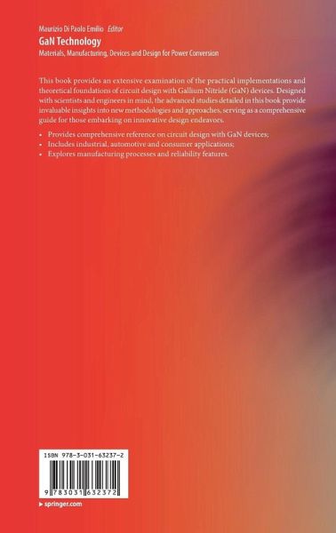 Introduction to GaN Technology.- GaN Material Properties.- Manufacturing Processes.- GaN Technology.- Applications of GaN Technology.- Case Studies.- Challenges and Future Trends.- Positioning and perspectives of GaN based power devices.- GaN Market.