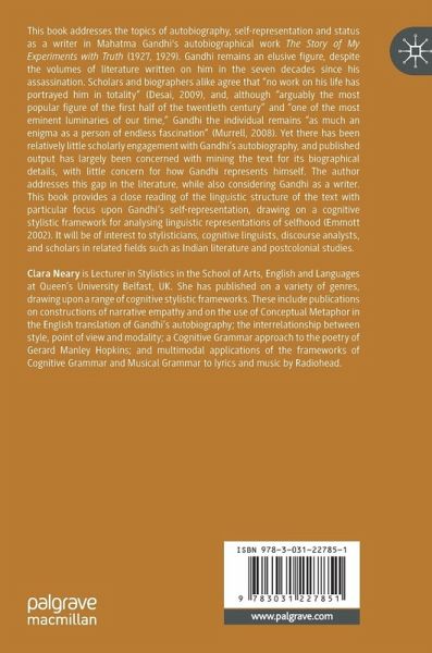 This book addresses the topics of autobiography, self-representation and status as a writer in Mahatma Gandhi's autobiographical work The Story of My Experiments with Truth (1927, 1929). Gandhi remains an elusive figure, despite the volumes of literature written on him in the seven decades since his assassination. Scholars and biographers alike agree that "no work on his life has portrayed him in totality" (Desai, 2009), and, although "arguably the most popular figure of the first half of the twentieth century" and "one of the most eminent luminaries of our time," Gandhi the individual remains "as much an enigma as a person of endless fascination" (Murrell, 2008). Yet there has been relatively little scholarly engagement with Gandhi's autobiography, and published output has largely been concerned with mining the text for its biographical details, with little concern for how Gandhi represents himself. The author addresses this gap in the literature, while also considering Gandhi as a writer. This book provides a close reading of the linguistic structure of the text with particular focus upon Gandhi's self-representation, drawing on a cognitive stylistic framework for analysing linguistic representations of selfhood (Emmott 2002). It will be of interest to stylisticians, cognitive linguists, discourse analysts, and scholars in related fields such as Indian literature and postcolonial studies.