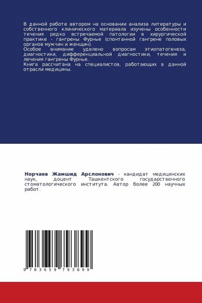 V dannoj rabote awtorom na osnowanii analiza literatury i sobstwennogo klinicheskogo materiala izucheny osobennosti techeniq redko wstrechaemoj patologii w hirurgicheskoj praktike - gangreny Furn'e (spontannoj gangrene polowyh organow muzhchin i zhenschin).Osoboe wnimanie udeleno woprosam ätiopatogeneza, diagnostiki, differencial'noj diagnostiki, techeniq i lecheniq gangreny Furn'e.Kniga rasschitana na specialistow, rabotaüschih w dannoj otrasli mediciny.