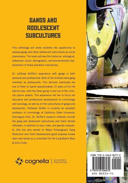 This anthology will allow students the opportunity to analyze gangs and other adolescent subcultures as social phenomena. The book outlines the historical, etiological, behavioral, social, demographic, and environmental characteristics of these prevalent subcultures. Dr. LaTanya Skiffer’s experience with gangs is both personal and professional. Both of her brothers were gang members as adolescents. This decision eventually led one of them to spend approximately 15 years of his life behind bars, with the other going in and out of the criminal justice system. This experience led her to focus her education and professional development on criminology and sociology, as well as on the subcultures of gangs and adolescents. Professor Skiffer is currently an assistant professor of criminology at California State University, Dominguez Hills. Dr. Skiffer's research interests include the gang and adolescent subcultures and black female offenders, in addition to race, class, and gender inequality. She has also served on Mayor Villaraigosa’s Gang Reduction and Youth Development grant proposal review team and serves as a consultant for the Long Beach Boys & Girls Clubs.