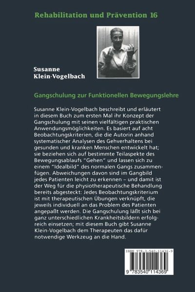 Einführung.- Die acht Beobachtungskriterien des normalen Gangs.- Erläuterungen zur Anwendung des Analysenkonzepts Actio-Reactio/Conditio-Limitatio.- Die einzelnen Schritte des Analysenkonzepts.- Beispiele: Formulierung von Actio, Reactio, Conditio, Limitatio in Therapeutensprache.- Das selektive Muskeltraining in der Funktionellen Bewegungslehre.- 1 Vorwärtstransport der Körperabschnitte Brustkorb und Kopf bei horizontaler Rechtwinkelstellung ihrer frontotransversalen Achsen zur Fortbewegungsrichtung.- 1.1 "Der Start".- 1.2 "MA-DSCHA-GA-LA-BA".- 1.3 "Reaktive Atmung".- 2 Gangtempo.- 2.1 "Normales Gangtempo".- 3 Spurbreite.- 3.1 "Fechterstellung".- 3.2 "Museumsstellung".- 4 Schrittlänge.- 4.1 "Siebenmeilenstiefel oder Sackhüpfen".- 5 Erhaltung der virtuellen Körperlängsachse und ihre vertikale Ausdehnung.- 5.1 "Rübezahl".- 5.2 Der "Brückenbauch".- 5.3 "Taille trimmen".- 5.4 "Gleich schwer".- 5.5 "Blickverhalten".- 5.6 "Bück Dich optimal".- 5.7 Das "Stehauf-Männchen".- 5.8 "Albatros".- 6Erhaltung der virtuellen Bein- und Fuchsachsen und die Einstellung der funktionellen Fußlängsachse in die Fortbewegungsrichtung.- 6.1 Der "Gewölbebauer".- 6.2 "Plazieren".- 6.3 Widerlagernde Mobilisation der Gelenke der unteren Extremität.- 6.4 Entlastende Manipulationen der Iliosakralgelenke.- 6.5 Unbelastetes Quadrizepstraining.- 6.6 Vom "Scheibenwischer" zur "Patella mobile".- 6.7 Die "Fersenschaukel".- 6.8 Das "Rosinchen".- 6.9 Der "Flamingo".- 6.10 Die "Sprungfeder".- 6.11 Die "Kleine Spirale".- 6.12 Die "Große Spirale".- 6.13 "Federball".- 6.14 Der "Treppengeher".- 7 Gehbewegungen der Körperabschnitte Becken und Beine.- 7.1 "Manipulierte Schrittauslösung".- 7.2 "Geisha-Gang".- 7.3 Der "Stock-Geher".- 7.4 Der "Eckengeher".- 7.5 Der "Eckensteher".- 8 Gangtypische Bewegungen des Körperabschnitts Arme als Reactio auf die Gehbewegungen der Körperabschnitte Beine und Becken.- 8.1 "Reaktive Armpendel".- 8.2 "Twist" und "Zirkuspferdchen".- 8.3 "Firlefanz".- 9 Beobachtung von Hinkmechanismen.- 10 Epilog.- 11 Addendum.- 12 Glossar.- 13 Literatur.