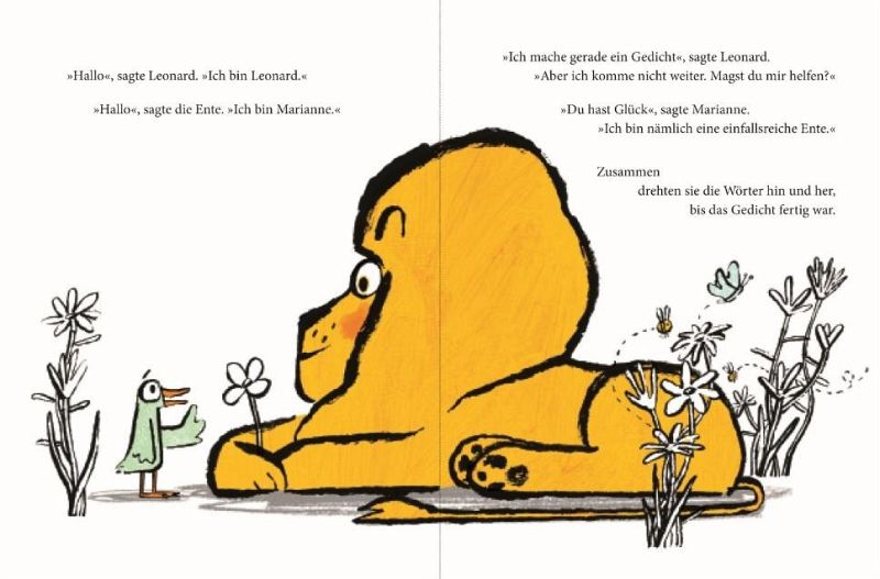 Löwe Leonard ist ein Freund der leisen Töne. Er denkt gerne nach, spielt mit Worten und hält nicht viel vom Wildsein. Als er in Ente Marianne eine Seelenverwandte findet, werden die beiden beste Freunde. Doch die anderen Löwen drängen Leonard, Marianne nach Löwenart zu behandeln: schnapp, mampf, schmatz ... Aber Leonard und Marianne verteidigen mutig ihre Art zu leben. Schließlich darf jeder sein, wie er ist - der eine laut und wild, der andere leise und nachdenklich. - Ein wunderschönes Bilderbuch für alle, die auch ganz einfach sein wollen, wie sie sind.
