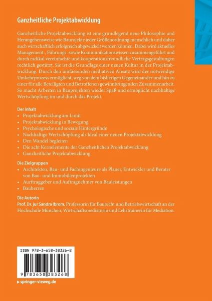 Ganzheitliche Projektabwicklung ist eine grundlegend neue Philosophie und Herangehensweise wie Baurojekte jeder Größenordnung menschlich und daher auch wirtschaftlich erfolgreich abgewickelt werden können. Dabei wird aktuelles Management-, Führungs- sowie Kommunikationswissen zusammengeführt und durch radikal vereinfachte und kooperationsfreundliche Vertragsgestaltungen rechtlich gestützt. Sie ist die Grundlage einer neuen Kultur in der Projektabwicklung. Durch den umfassenden mediativen Ansatz wird der notwendige Umkehrprozess ermöglicht, weg von dem bisherigen Gegeneinander und hin zu einer für alle Beteiligten und Betroffenen gewinnbringenden Zusammenarbeit. So macht Arbeiten in Bauprojekten wieder Spaß und ermöglicht nachhaltige Wertschöpfung im und durch das Projekt.