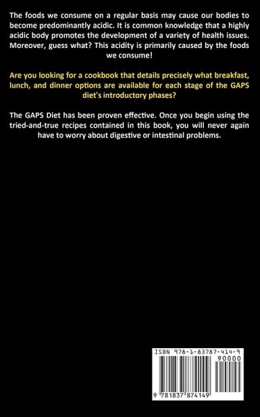 The foods we consume on a regular basis may cause our bodies to become predominantly acidic. It is common knowledge that a highly acidic body promotes the development of a variety of health issues. Moreover, guess what? This acidity is primarily caused by the foods we consume! Are you looking for a cookbook that details precisely what breakfast, lunch, and dinner options are available for each stage of the GAPS diet's introductory phases? The GAPS Diet has been proven effective. Once you begin using the tried-and-true recipes contained in this book, you will never again have to worry about digestive or intestinal problems.