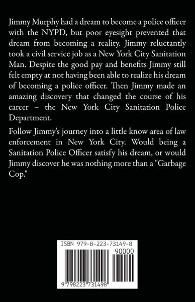 Jimmy Murphy had a dream to become a police officer with the NYPD, but poor eyesight prevented that dream from becoming a reality. Jimmy reluctantly took a civil service job as a New York City Sanitation Man. Despite the good pay and benefits Jimmy still felt empty at not having been able to realize his dream of becoming a police officer. Then Jimmy made an amazing discovery that changed the course of his career – the New York City Sanitation Police Department. Follow Jimmy's journey into a little know area of law enforcement in New York City. Would being a Sanitation Police Officer satisfy his dream, or would Jimmy discover he was nothing more than a "Garbage Cop."