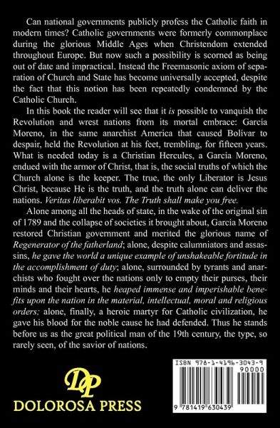 Gabriel Garcia Moreno (1821-1875) was a model Catholic president of Ecuador. He courageously founded a Republic upon Catholic principles and publicly consecrated it to the Sacred Heart, and for this he was martyred by paid assassins. This biography by Fr. Berthe is the most complete and authoritative one in existence. It has been out of print in English since 1889 when it was first published.