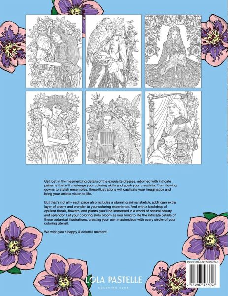 Welcome to our Garden Glamour coloring book! With 40 hand-sketched illustrations, this book features girls in beautiful dresses with intricate patterns. But that's not all - each page is brought to life with a stunning animal sketch, adding an extra touch of charm to your coloring experience. And with a backdrop of opulent florals, flowers, and plants, you'll be transported to a world of natural beauty and splendor. Whether you're a seasoned colorist or new to the art, these pages provide the perfect space to unwind and express your creativity. We hope you enjoy the coloring book as much as we enjoyed creating it!