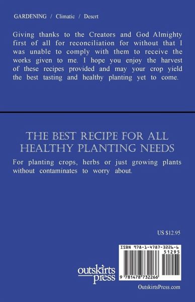 In this book we have done extensive research and have found recipes for growing crop, planting flowers and also preparing herbs. We have included the healthy growing essential way to life that has no contaminates such as the animal manure a lot of our food has been given. If you would try the recipes you will truly see the difference and how much more healthier you and your family can eat all the fruit and vegetables without contamination. Give it a try you will see and know the difference. Good luck on your next harvest!