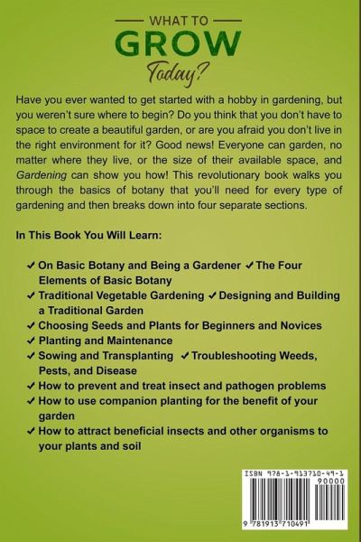 Have you ever wanted to get started with a hobby in gardening, but you weren't sure where to begin? Do you think that you don't have to space to create a beautiful garden, or are you afraid you don't live in the right environment for it? Good news! Everyone can garden, no matter where they live, or the size of their available space, and Gardening can show you how! This revolutionary book walks you through the basics of botany that you'll need for every type of gardening and then breaks down into four separate sections on: Traditional Vegetable Gardening Raised Bed Gardening Urban Gardening Greenhouse Gardening In This Book You Will Learn: ¿ On Basic Botany and Being a Gardener ¿ The Four Elements of Basic Botany ¿ Traditional Vegetable Gardening ¿ Designing and Building a Traditional Garden ¿ Choosing Seeds and Plants for Beginners and Novices ¿ Planting and Maintenance ¿ Sowing and Transplanting ¿ Troubleshooting Weeds, Pests, and Disease ¿ How to prevent and treat insect and pathogen problems ¿ How to use crop rotation, vertical gardening, and succession planting to maximize space ¿ How to harvest food and flowers for use in the home ¿ How to use companion planting for the benefit of your garden ¿ How to attract beneficial insects and other organisms to your plants and soil ¿ How to keep a garden journal to record your activities for future planning And much more! So if you're ready to open your eyes to a whole new perspective on gardening and the natural world, you need to open up Gardening, today. If you want to learn the whys and the hows of being a great gardener, then this is the book for you. What are you waiting for? The joys, challenges, and rewards of having an amazing garden are right at your fingertips, so get your copy and see for yourself how incredible Gardening can be. Pick up your copy of the book right now by clicking the BUY NOW button at the top of this page!