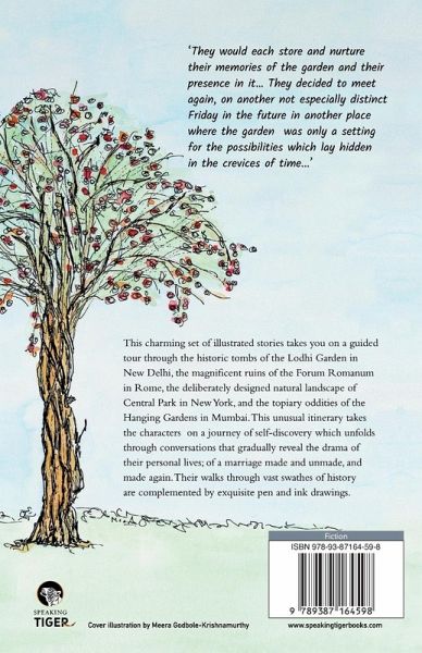 Illustrated love stories that take you on a journey through gardens across the world. This charming set of illustrated stories takes you on a guided tour through the historic tombs of the Lodhi Garden in New Delhi, the magnificent ruins of the Forum Romanum in Rome, the deliberately designed natural landscape of Central Park in New York, and the topiary oddities of the Hanging Gardens in Mumbai. This unusual itinerary takes the characters on a journey of self-discovery which unfolds through conversations that gradually reveal the drama of their personal lives, of a marriage made and unmade, and made again. Their walks through vast swathes of history are complemented by exquisite pen and ink drawings.