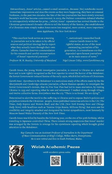 Gareth Jones - Eyewitness to the Holodomor is a meticulous study of the efforts made by the the Aberystwyth and Cambridge-educated journalist, a fluent Russian-speaker, to investigate the Soviet Governmentâ s denials, that its Five Year Plan had led to mass starvation, by visiting Ukraine in 1933 and reporting what he saw and witnessed.