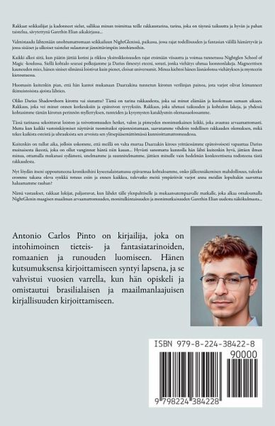 Rakkaat seikkailijat ja kadonneet sielut, sallikaa minun toimittaa teille rakkaustarina, tarina, joka on täynnä taikuutta ja hyvän ja pahan taistelua, sävytettynä Garethin Elian aikakirjassa... Valmistaudu lähtemään unohtumattomaan seikkailuun NightGlenissä, paikassa, jossa rajat todellisuuden ja fantasian välillä hämärtyvät ja jossa sisäiset ja ulkoiset taistelut sulautuvat jännittävimpiin intohimoihin. Kaikki alkoi siitä, kun päätin jättää kotini ja rikkoa yksitoikkoisuuden rajat etsimään viisautta ja voimaa tunnetussa Nightglen School of Magic -koulussa. Siellä kohtalo seurasi polkujamme ja Darius ilmestyi eteeni, soturi, jonka viehätys uhmaa luonnonlakeja. Magneettisen kauneuden mies, hänen siniset silmänsä loistivat kuin pienet, eloisat universumit. Minua kiehtoi hänen läsnäolonsa viehätyksen ja mysteerin kietoutuessa. Huomasin kuitenkin pian, että hän kantoi mukanaan Daarzakina tunnetun kirotun verilinjan painoa, jota varjot olivat leimanneet ikimuistoisista ajoista lähtien. Oliko Darius Shadowthorn kirottu vai siunattu? Tämä on tarina rakkaudesta, joka sai minut elämään ja kuolemaan samaan aikaan. Rakkaus, joka vei minut onnen korkeuksiin ja epätoivon syvyyksiin. Rakkaus, joka uhmasi taikuuden ja kohtalon lakeja, ja yhdessä kohtasimme tämän kirotun perinnön myllerryksen, tunteiden ja kysymysten kataklysmin olemassaolossamme. Tässä tarinassa sekoittuvat loiston ja toivottomuuden hetket, valon ja pimeyden monimutkainen leikki, joka avautuu arvaamattomasti. Mutta kun kaikki vastoinkäymiset näyttävät tuomituiksi epäonnistumaan, saavutamme vihdoin todellisen rakkauden olemuksen, mikä tekee kaikista esteistä ja uhrauksista sen arvoista sen ylitsepääsemättömässä kunnioittamattomuudessa. Kuitenkin on tullut aika, jolloin uskomme, että meillä on valta murtaa Daarzakin kirous yrittäessämme epätoivoisesti vapauttaa Darius muinaisesta ikeestä, joka on ollut vanginnut häntä niin kauan... Hyvästi sanomatta kunnolla hän lähti kuitenkin hyvä, jättäen ilman minua, ottamalla mukanasi sydämeni, unelmamme ja suunnitelmamme, jättäen minulle vain hedelmän konkreettisena todisteena tästä rakkaudesta. Nyt löydän itseni uppoutuneena kronikoihini kyseenalaistamassa epävarmaa kohtaloamme, onko jälleennäkemisen mahdollisuus, tuleeko eromme takana oleva synkkä totuus esiin ja ennen kaikkea, tulevatko meitä ympäröivät varjot anna meidän lopultakin saavuttaa haluamamme rauhan? Nämä vastaukset, rakkaat lukijat, paljastuvat, kun lähdet tälle ylenpalttiselle ja mukaansatempaavalle matkalle, joka alkaa omaksumalla NightGlenin maagisen maailman arvaamattomuuden, monitulkintaisuuden ja monimutkaisuuden Garethin Elian uudesta näkökulmasta...