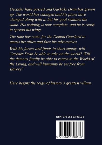 Decades have passed and Garkoks Dran has grown up. The world has changed and his plans have changed along with it, but his goal remains the same. His training is now complete, and he is ready to spread his wings.The time has come for the Demon Overlord to amass his allies and face his adversaries.With his forces and funds in short supply, will Garkoks Dran be able to take on the world? Will the demons finally be able to return to the World of the Living, and will humanity be set free from slavery?Here begins the reign of history's greatest villain.