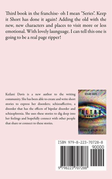 Keilani Davis is a new author to the writing community. She has been able to create and write short stories to express her disorders; schizoaffective, a disorder that has the effects of bipolar disorder and schizophrenia. She uses these stories to dig deep into her feelings and hopefully connect with other people that share or connect to these stories.