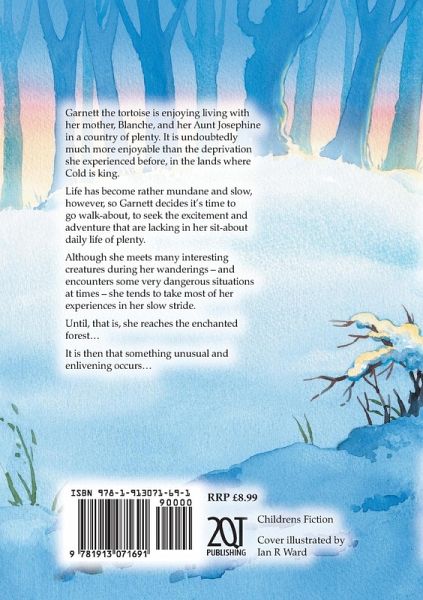 Garnett the tortoise is enjoying living with her mother, Blanche, and her Aunt Josephine in a country of plenty. It is undoubtedly much more enjoyable than the deprivation she experienced before, in the lands where Cold is king. Life has become rather mundane and slow, however, so Garnett decides it's time to go walk-about, to seek the excitement and adventure that are lacking in her sit-about daily life of plenty. Although she meets many interesting creatures during her wanderings - and encounters some very dangerous situations at times - she tends to take most of her experiences in her slow stride. Until, that is, she reaches the enchanted forest... It is then that something unusual and enlivening occurs...