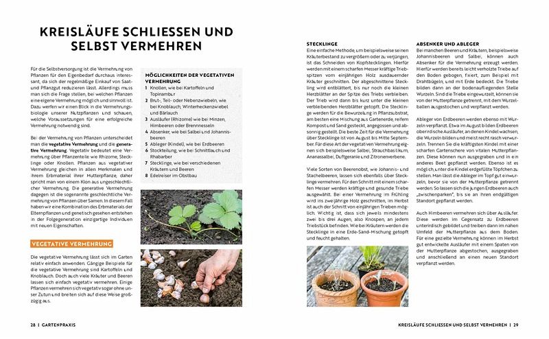 Zahlreiche Pflanzporträts stellen die wichtigsten Pflanzen für den Selbstversorgergarten vorMit praktischen Tipps und Tricks zur Verbesserung und Erhaltug der Bodenfruchtbarkeit - für maximale ErträgeErnten das ganze Jahr über: Überwinterungskultur leicht erklärtAus eins macht zwei: Kompaktes Wissen zur Vermehrung des eigenen Saatguts