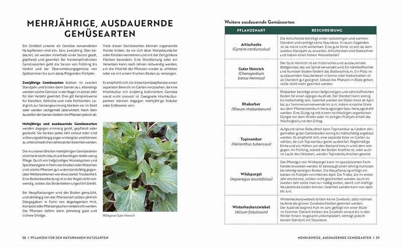 Zahlreiche Pflanzenporträts stellen die wichtigsten Pflanzen für den naturnahen Garten vorMit praktischen Tipps und Tricks zur Verbesserung und Erhaltung der BodenfruchtbarkeitAus eins macht zwei: Kompaktes Wissen zu Anbau, Erhaltung und Vermehrung alter Gemüsesorten