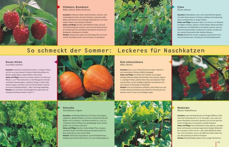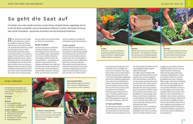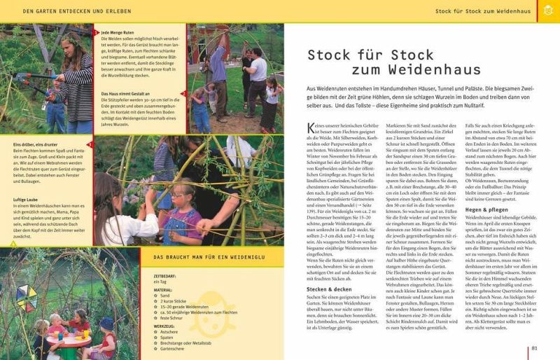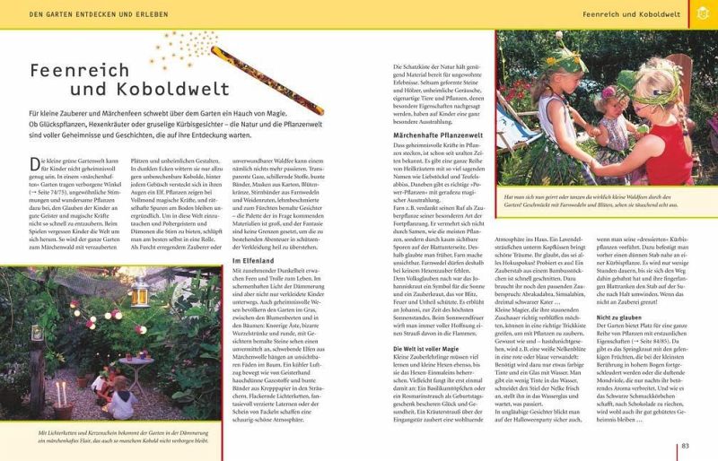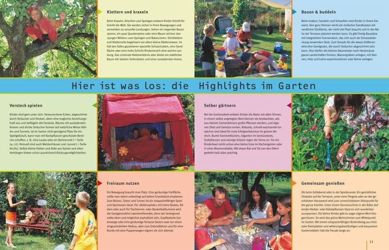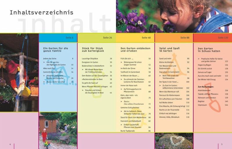 Das lässt Kinderherzen höher schlagen! Ein Erlebnisgarten, in dem Kinder nach Lust und Laune spielen, tollen, bauen, Abenteuer erleben und gärtnern können - sei es mit der Familie oder mit Freunden. Dabei muss der Garten nicht besonders groß sein. "Gartenspaß für Kinder" steckt voller kreativer Ideen, die leicht umzusetzen sind - von der einfachen Wasserrutsche bis zum Feuerbohnentippi, vom Anlegen eines Nasch- und Duftbeetes mit Schokoladenpflanze und Gummibärchenblume bis zum fantasievollen Spielen im Feen- und Koboldgarten. Gleichzeitig liefert der Ratgeber in anschaulichen Bildfolgen das nötige gärtnerische Know-how zur Anlage und Pflege von Familiengärten. Thematisch eingestreute Porträts stellen die besten Pflanzen für Familiengärten vor, z.B. pflegeleichte Blütensträucher, bunte Sommerblumen, leckeres Naschobst und Gemüse und Pflanzen für alle Sinne. Wichtige Tipps zum Thema Sicherheit sowie eine Tabelle mit giftigen Pflanzen runden den Ratgeber ab.