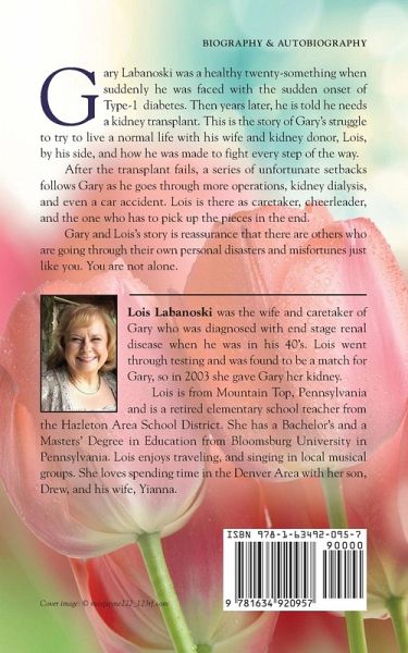 As a healthy twenty-something, Gary never expected to be diagnosed with an incurable disease. Years after Gary had to face the sudden onset of Type-1 diabetes; he is told he now needs a kidney transplant. This is the story of Gary’s fight to lead a normal life with his wife and kidney donor, Lois, by his side. A series of unfortunate setbacks follows Gary after the transplant fails. He must fight his way through more operations, kidney dialysis, and even a car accident. Lois is there every step of the way, acting as caretaker, cheerleader, and the one who gets to pick up the pieces in the end. Gary and Lois’s story serve as a reminder that there are other people in the world going through their own personal struggles. Disasters and misfortunes are part of everyone’s lives. The author wants to impart to the readers the sense that they are not alone in dealing with their own struggles.