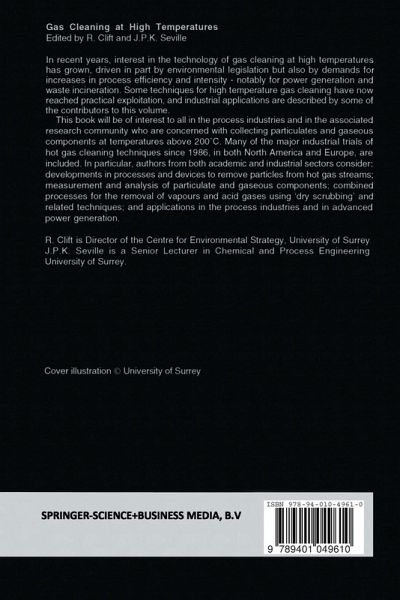 This volume comprises the papers presented at the Second International Symposium on Gas Cleaning at High Temperatures, held at the University of Surrey, Guildford, UK on 27-29 September, 1993. The Symposium was organised by the Department of Chemical and Process Engineering and the Centre for Environmental Strategy of the University of Surrey, and co-sponsored by The Institution of Chemical Engineers, The Filtration Society and the Royal Society of Chemistry. Co-chairmen R. Clift Centre for Environmental Strategy, University of Surrey J. P. K. Seville Department of Chemical and Process Engineering, University of Surrey Secretary Centre for Environmental Strategy, University of Surrey J. Libaert Scientific Committee British Coal Research Establishment, Cheltenham, UK P. Cahill Shell International, The Hague, Netherlands W. A. Dries University of Karlsruhe, Germany P. Gang Van Tongeren International, Godalming, UK R. R. Greenfield Blue Circle Technical Centre, Greenhithe, UK C. P. Kerton Powergen, Solihull, UK W. S. Kyte Separation Processes Service, Harwell, UK K. Morris Pall Process Filtration, Portsmouth, UK N. Moss Pilkington, Ormskirk, UK G. A. Rimmer Lodge Sturtevant, Birmingham, UK A. Russell-Jones J. Strickland Davy McKee, Stockton-an-Tees, UK Glosfume Environmental Controls, Ashleworth, UK C. J. Withers Financial sponsors Shell International Inc.