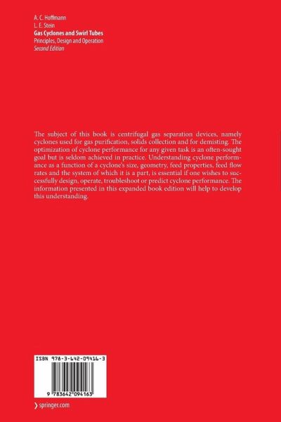 Believed to be a publishing first when originally brought out, this book covers all aspects of centrifugal gas cleaning devices. These are cyclones used as gas-solid separators for dedusting and as gas-liquid separators for demisting. The optimization of cyclone performance for any given task is a sought-after goal ¿ but it is one that is seldom achieved in practice. This second edition will help mechanical and chemical engineers to achieve this optimization.