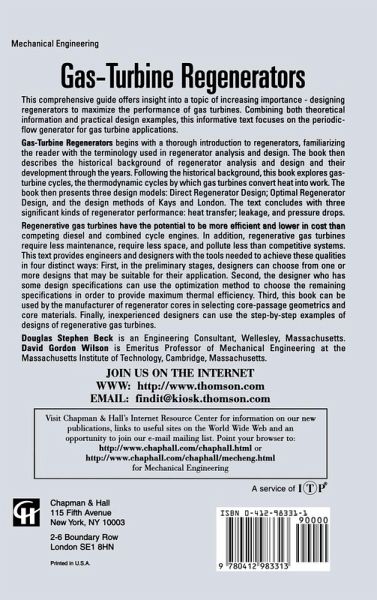 Regenerative gas turbines are attractive alternatives to diesel engines and spark ignition engines for automobiles and to diesel engines and combined-cycle en gines for power generation. Theory indicates regenerative gas turbines should achieve higher thermal efficiencies than those of diesel engines and combined cycle engines. Further, regenerative gas turbines are potentially lower in cost, require less maintenance, require less space, and pollute less than competitive systems. Regenerators can be used for exhaust-gas heat exchange or for intercooling in gas-turbine systems. As an exhaust-gas heat exchanger, a regenerator recovers heat from the exhaust and uses it to preheat the compressed air before the compressed air enters the combustor. Preheating of the compressed air permits a small heat input to the combustor for a given power output of the engine. As an intercooler, a regenerator cools the gas between compressor stages. Less work is required to compress cool gas than isrequired to compress warm gas. Therefore, a regenerator intercooler can reduce the required work input to the compressor. Thus, regenerators can be used to increase the thermal efficiencies and power outputs of gas turbines. the backbones of high-performance re High-performance regenerators are generative gas turbines. In the past, lack of understanding of regenerator per formance has led to sub-optimal engine designs. Now this book gives com prehensive regenerator information. With this book, the designer can design regenerators that will yield gas turbines with maximum thermal efficiencies.