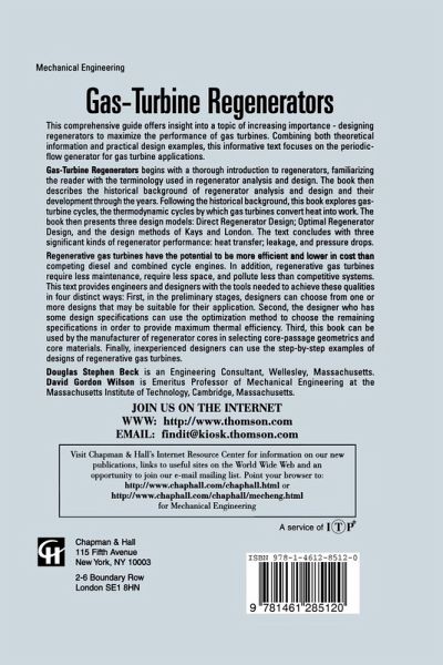 Regenerative gas turbines are attractive alternatives to diesel engines and spark ignition engines for automobiles and to diesel engines and combined-cycle en gines for power generation. Theory indicates regenerative gas turbines should achieve higher thermal efficiencies than those of diesel engines and combined cycle engines. Further, regenerative gas turbines are potentially lower in cost, require less maintenance, require less space, and pollute less than competitive systems. Regenerators can be used for exhaust-gas heat exchange or for intercooling in gas-turbine systems. As an exhaust-gas heat exchanger, a regenerator recovers heat from the exhaust and uses it to preheat the compressed air before the compressed air enters the combustor. Preheating of the compressed air permits a small heat input to the combustor for a given power output of the engine. As an intercooler, a regenerator cools the gas between compressor stages. Less work is required to compress cool gas than isrequired to compress warm gas. Therefore, a regenerator intercooler can reduce the required work input to the compressor. Thus, regenerators can be used to increase the thermal efficiencies and power outputs of gas turbines. the backbones of high-performance re High-performance regenerators are generative gas turbines. In the past, lack of understanding of regenerator per formance has led to sub-optimal engine designs. Now this book gives com prehensive regenerator information. With this book, the designer can design regenerators that will yield gas turbines with maximum thermal efficiencies.