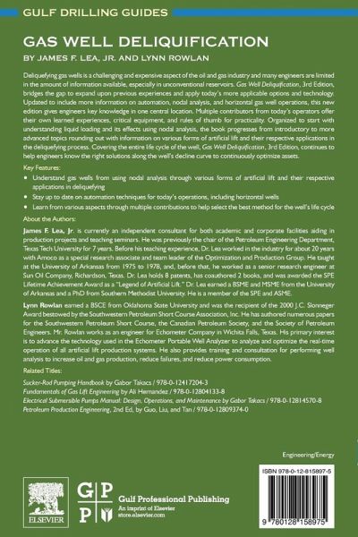 1. Introduction2. Recognizing Symptoms of Liquid Loading in Gas Wells3. Critical Velocity4. Nodal Analysis5. Compression6. Plunger Lift7. Hydraulic Pumping8. Liquid Unloading Using Chemicals for Wells and Pipelines9. Progressing Cavity Pumps10. Use of Beam Pumps to Deliquefy Gas Wells11. Gas Lift12. Electrical Submersible Pumps13. Coal Bed Methane (CBM) and Shale14. Production AutomationAppendix A: Development of critical velocity equationsAppendix B: Nodal concepts and stability concernsAppendix C: Plunger troubleshooting proceduresAppendix D: Gas lift terminologyIndex