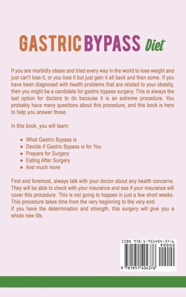 Is the Gastric Bypass Procedure and Diet right for You? When you open Gastric Bypass Diet, you’ll learn all the pros and cons of this life-changing procedure. This is always the last option for doctors to do because it is an extreme procedure. You probably have many questions about this procedure, and this book is here to help you answer those! In this book, you will learn: * What Gastric Bypass is * Decide if Gastric Bypass is for You * Prepare for Surgery * Eating After Surgery * And much more It’s important to stick with the diet your physician prescribes after your surgery. In this book, you’ll find out about the different foods you can eat during the different phases of your recovery. Don’t spend another night staring in the mirror at the old you. Get your copy of Gastric Bypass Diet today – and start sculpting a better body!
