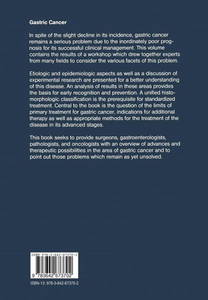 1 Epidemiology and Pathogenesis.- Exogenous Factors in the Epidemiology of Gastric Carcinoma.- Pathogenesis of Gastric Carcinoma: The Role of the Microenvironment.- Carcinoma of the Stomach in Urbanized Black South Africans.- Carcinogenic Substances and Carcinogenesis - Their Clinical Significance.- Summary: Epidemiology and Pathogenesis of Gastric Cancer.- 2 Experimental Gastric Cancer.- Experimental Gastric Cancer: Pathogenesis and Clinico-Histopathologic Correlation.- Epithelium at the Gastroenteral Borderline - Comparison of Animal Experiments and Clinical-Pathological Investigations.- Experimental Cancer of the Gastric Stump.- Formal Pathogenesis of Chemically-Induced Cancers After Gastric Operation.- Vagotomy and Gastric Cancer.- Susceptibility to Experimental Gastric Ulcer - Experimental Gastric Cancer, and Gastric Region.- Summary: Experimental Gastric Cancer.- 3 Precancerous Lesions of Gastric Cancer.- Histology of Possible Precancerous Stages in the Stomach.- Dysplastic Changes in Intestinal Metaplasia of the Gastric Mucosa.- Biological Significance of Dysplasias of the Epithelium and of Atrophic Gastritis.- Significance and Location of Atrophic Gastritis and of Glandular Dysplasia in Benign and Malignant Gastric Disease.- Endoscopic Therapy of Gastric Precancerosis.- Summary: Precancerous Lesions of Gastric Cancer.- 4 Risk Factors for Gastric Cancer.- Duodenogastric Reflux and Epithelial Lesions.- Nitrite and N-Nitroso-Compounds in the Operated Stomach.- Risk of Carcinoma in the Gastric Remnant After Gastric Resection for Benign Conditions.- Remarks on Frequency and Pathogenesis of Primary Gastric Stump Cancer.- Prospective Studies in Patients with Resected Stomach and Stump Carcinoma.- Gastric Polyps and Gastric Cancer.- Summary: Risk Factors inGastric Cancer.- 5 Diagnostic Procedures for Classification of Gastric Cancer.- Significance of Diagnostic Procedures for Preoperative Staging.- Biological Markers for Staging of Gastric Cancer?.- Typing, Grading, and Staging of Gastric Carcinoma.- Summary: Diagnostic Procedures for Gastric Cancer.- 6 Prognostic Factors of Gastric Cancer.- Cancer of the Stomach - Prognosis, Independent of Therapy.- Prognostic Significance of Stromal Reaction in Gastric Carcinoma.- A Statistical Trial on Evaluation for Prognosis of Gastric Cancer.- Summary: Prognosis of Gastric Cancer.- 7 Surgical Therapy.- Value of the Gastrectomy "De Principe".- On the Problem of "Stage-Appropriate" Treatment of Gastric Cancer.- Local Excision - A Therapeutic Procedure in Early Gastric Carcinoma?.- Influence of the Choice of Surgical Procedure in Gastric Cancer on the 5-Year Survival Time.- Problems Associated with the Surgical Treatment of Cancer of the Gastric Stump.- Summary: Surgical Therapy.- 8 The Patient After Total Gastrectomy.- Pathophysiological Consequences of Total Gastrectomy.- Importance of the Duodenal Passage Following Gastrectomy.- Significance of the Duodenum for Carbohydrate Metabolism in Patients After Total Gastrectomy.- Nutritional History in Gastrectomized Patients.- Summary: The Patient After Total Gastrectomy.- 9 Experiences with Various Reconstructive Methods After Total Gastrectomy.- Esophagojejunostomy Following Gastrectomy for Gastric Carcinoma - A Follow-Up Study.- Mortality and Morbidity After Esophagojejunostomy.- Jejunal Interposition.- Jejunal Interposition with Plication.- Esophagojejunoplication.- Comparative Analysis of Two Types of Gastric Replacement After Total Gastrectomy.- The Jejunal Pouch as Stomach Substitute.- Jejunal Pouch According toHunt-Lawrence-Rodino with Jejunoplication.- Jejunal Pouch After Total Gastrectomy: A Study of Different Substitutes for the Stomach.- Quality of Life and Stomach Replacement.- Summary: Experiences with Various Types of Reconstructive Procedures After Gastrectomy.- 10 Adjuvant Therapeutic Measures.- A Tentative Synopsis of the Nutritional Problems Encountered in Patients Afflicted with Malignant Neoplasia.- Total Parenteral Nutrition in Regional Surgery for Gastric Cancer.- Immunological Changes During a Perioperative Parenteral Hyperalimentation in Gastrointestinal Cancer.- Results of Surgery for Gastric Cancer and Effect of Adjuvant Chemotherapy.- A Controlled Prospective Study of Adjuvant 5-Fluorouracil and BCNU Therapy in Stomach Carcinoma.- Chemotherapy in Advanced Gastric Cancer.- Combination of Radio-Chemotherapy in Patients with Advanced Gastric Cancer.- Summary: Additional Therapy in Gastric Cancer.
