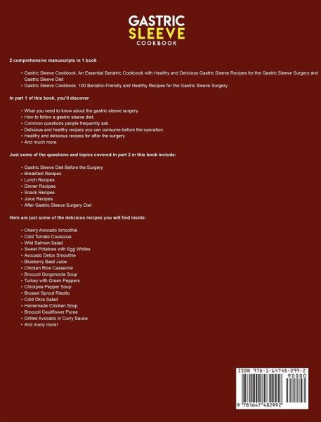 2 comprehensive manuscripts in 1 bookGastric Sleeve Cookbook: An Essential Bariatric Cookbook with Healthy and Delicious Gastric Sleeve Recipes for the Gastric Sleeve Surgery and Gastric Sleeve DietGastric Sleeve Cookbook: 100 Bariatric-Friendly and Healthy Recipes for the Gastric Sleeve Surgery
