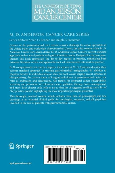 Gastrointestinal Cancer is the third volume in the M.D. Anderson Cancer Care series, featuring the current standard approach to GI cancer care from the experts at M.D. Anderson Cancer Center.