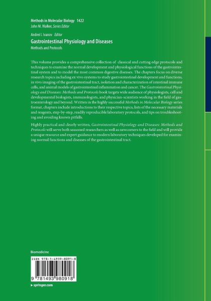 Highly practical and clearly written, Gastrointestinal Physiology andDiseases: Methods and Protocols will serve both seasoned researchers as well asnewcomers to the field and will providea unique resource and expert guidance to modern laboratory techniques developedfor examining normal functions and diseases of the gastrointestinal tract.