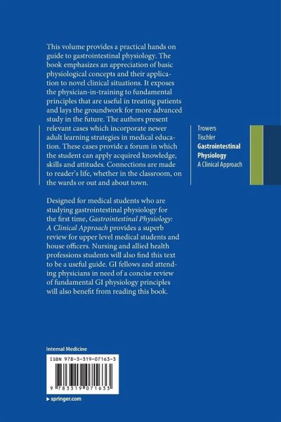This volume provides a practical hands on guide to gastrointestinal physiology. The book emphasizes an appreciation of basic physiological concepts and their application to novel clinical situations. It exposes the physician-in-training to fundamental principles that are useful in treating patients and lays the groundwork for more advanced study in the future. The authors present relevant cases which incorporate newer adult learning strategies in medical education. These cases provide a forum in which the student can apply acquired knowledge, skills and attitudes. Connections are made to reader's life, whether in the classroom, on the wards or out and about town.
