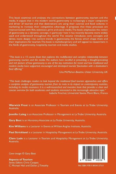 This book examines and analyses the connections between gastronomy, tourism and the media. It argues that in the modern world, gastronomy is increasingly a major component and driver of tourism and that destinations are using their cuisines and food cultures in marketing to increase their competitive advantage. It proposes that these processes are interconnected with film, television, print and social media. The book emphasises the notion of gastronomy as a dynamic concept, in particular how it has recently become more widely used and understood throughout the world. The volume introduces core concepts and delves more deeply into current trends in gastronomy, the forces which shape them and their implications for tourism. The book is multidisciplinary and will appeal to researchers in the fields of gastronomy, hospitality, tourism and media studies.