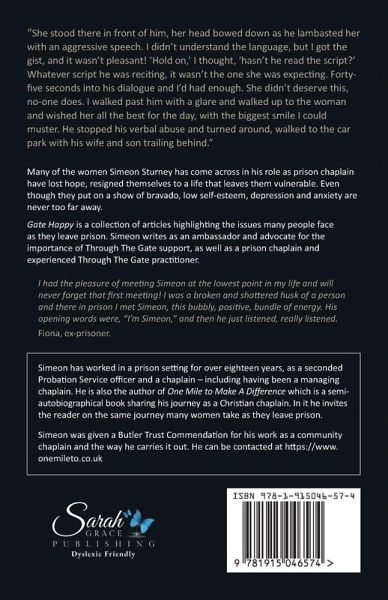 "She stood there in front of him, her head bowed down as he lambasted her with an aggressive speech. I didn't understand the language, but I got the gist, and it wasn't pleasant! 'Hold on, ' I thought, 'hasn't he read the script?' Whatever script he was reciting, it wasn't the one she was expecting. Forty-five seconds into his dialogue and I'd had enough. She didn't deserve this, no-one does. I walked past him with a glare and walked up to the woman and wished her all the best for the day, with the biggest smile I could muster. He stopped his verbal abuse and turned around, walked to the car park with his wife and son trailing behind." Many of the women Simeon Sturney has come across in his role as prison chaplain have lost hope, resigned themselves to a life that leaves them vulnerable. Even though they put on a show of bravado, low self-esteem, depression and anxiety are never too far away. Gate Happy is a collection of articles highlighting the issues many people face as they leave prison. Simeon writes as an ambassador and advocate for the importance of Through The Gate support, as well as a prison chaplain and experienced Through The Gate practitioner.