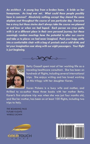 An architect. A young boy from a broken home. A bride on her honeymoon. An Iraqi war vet. What could these people possibly have in common? Absolutely nothing, except they shared the same airplane seat throughout the course of one particular day. Everyone has a story, but those stories don't always take the course we planned or end how or when we had hoped. Each person we cross paths with is at a different place in their own personal journey, but these seemingly random meetings have the potential to alter our course and take us to places we had never imagined. Pack your bags, settle into a comfortable chair with a bag of pretzels and a cold drink, and let your imagination soar along with our eight passengers. Your flight is just beginning.