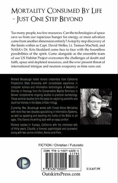 Mortality Consumed By Life - Just One Step Beyond Too many people, too few resources. Can the technologies of space save us from our rapacious hunger for energy, or must salvation come from another dimension entirely? A step by step discovery of the limits within as Capt. David Weller, Lt. Tannon MacNeil, and NASA's Dr. Kris Stoddard come face to face with the boundless possibilities of the spirit. Come alongside as the ensemble team of our US Habitat Project overcomes the challenges of doubt and faith, space and depleted resources, and the ever present threat of international intrigue and neutron weaponry as time runs out.