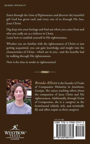 Enter through the Gates of Righteousness and discover the beautiful gift God has given each and every one of us through His Son, Jesus Christ. Dig deep into your heritage and find out where you come from and who you really are as a believer in Christ. Learn how to establish yourself in His righteousness. Whether you are familiar with the righteousness of Christ or just getting acquainted, you can gain knowledge and insight into the characteristics of Christ—which are in you—and the benefits had by walking through His righteousness. Now is the time to awake to righteousness!