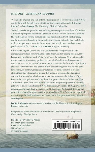 Gateways to Empire: Quebec and New Amsterdam to 1664 by Daniel Weeks is the first comprehensive comparative study of the North American fur-trading colonies New France and New Netherland. Weeks traces the evolution of Quebec and New Amsterdam from hubs for trade with the Indians to gateways for European settlement.