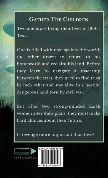 Two aliens are living their lives in 1860's Texas. One is filled with rage against the world; the other drawn to return to his homeworld and reclaim his land. Before they learn to navigate a spaceship between the stars, they need to find trust in each other and stay alive in a hostile, dangerous land torn by civil war. But after two strong-minded Earth women alter their plans, they must make hard choices about their future. Is revenge more important than love?