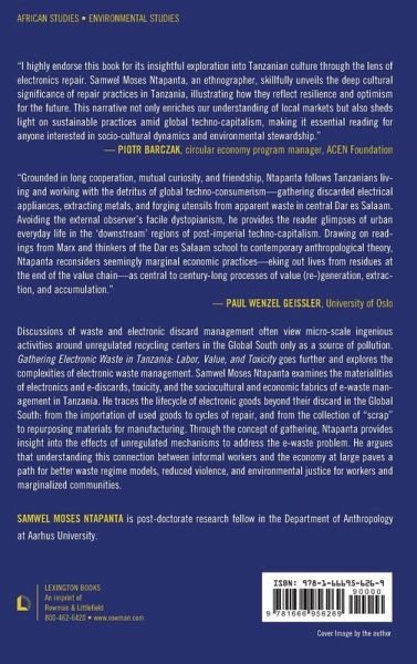 Discussions of waste and electronic discard management often view micro-scale ingenious activities around unregulated recycling centers in the Global South only as a source of pollution. Gathering Electronic Waste in Tanzania: Labor, Value, and Toxicity goes further and explores the complexities of electronic waste management. Samwel Moses Ntapanta examines the materialities of electronics and e-discards, toxicity, and the sociocultural and economic fabrics of e-waste management in Tanzania. He traces the lifecycle of electronic goods beyond their discard in the Global South: from the importation of used goods to cycles of repair, and from the collection of 'scrap' to repurposing materials for manufacturing. Through the concept of gathering, Ntapanta provides insight into the effects of unregulated mechanisms to address the e-waste problem. He argues that understanding this connection between informal workers and the economy at large paves a path for better waste regime models, reduced violence, and environmental justice for workers and marginalized communities.