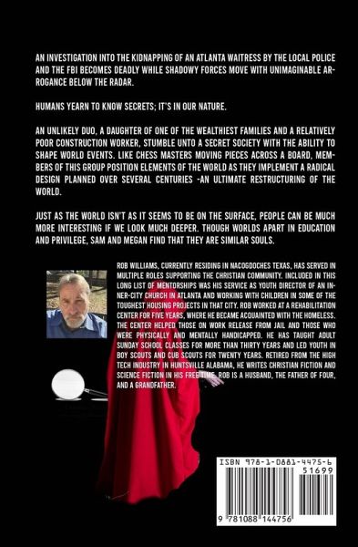 An investigation into the kidnapping of an Atlanta waitress by the local police and the FBI becomes deadly while shadowy forces move with unimaginable arrogance below the radar. Humans yearn to know secrets; it's in our nature. An unlikely duo, a daughter of one of the wealthiest families and a relatively poor construction worker, stumble unto a secret society with the ability to shape world events. Like chess masters moving pieces across a board, members of this group position elements of the world as they implement a radical design planned over several centuries -an ultimate restructuring of the world. Just as the world isn't as it seems to be on the surface, people can be much more interesting if we look much deeper. Though worlds apart in education and privilege, Sam and Megan find that they are similar souls. "A woman unearths a sinister secret about her parents in this Da Vinci Code-esque thriller." - Kirkus Reviews