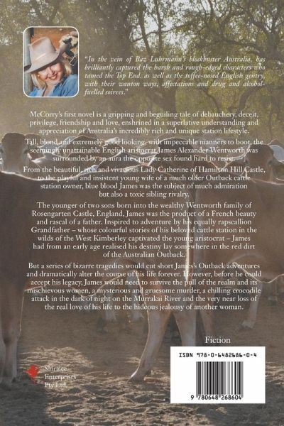 Tall, blond and extremely good looking, with impeccable manners to boot, the seemingly unattainable English aristocrat James Alexander Wentworth was surrounded by an aura the opposite sex found hard to resist. From the beautiful, rich and vivacious Lady Catherine of Hamilton Hill Castle, to the playful and insistent young wife of a much older Outback cattle station owner, blue blood James was the subject of much admiration but also a toxic sibling rivalry. The younger of two sons born into the wealthy Wentworth family of Rosengarten Castle, England, James was the product of a French beauty and rascal of a father. Inspired to adventure by his equally rapscallion Grandfather – whose colourful stories of his beloved cattle station in the wilds of the West Kimberley captivated the young aristocrat – James had from an early age realised his destiny lay somewhere in the red dirt of the Australian Outback. But a series of bizarre tragedies would cut short James’s Outback adventures and dramatically alter the course of his life forever. However, before he could accept his legacy, James would need to survive the pull of the realm and its mischievous women, a mysterious and gruesome murder, a chilling crocodile attack in the dark of night on the Murrakai River and the very near loss of the real love of his life to the hideous jealousy of another woman.