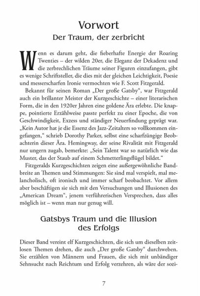 Die besten Kurzgeschichten von F. Scott Fitzgerald, Band 1 Glamour, Reichtum, Ehrgeiz - und die harte Realität dahinter. F. Scott Fitzgerald war der große Chronist einer Epoche, in der Träume in Champagnerlicht getaucht waren und oft in Ernüchterung endeten. Seine Kurzgeschichten erzählen von Menschen, die nach Erfolg streben, vom süßen Gift des Wohlstands kosten und erkennen müssen, dass Glück nicht mit Gold aufzuwiegen ist. Ob ein junger Millionär, dem echte Nähe fehlt, oder ein Mann, der einen Diamanten findet, der zu groß ist, um ihn zu besitzen - Fitzgeralds Figuren jagen dem amerikanischen Traum hinterher und erkennen zu spät, dass er sie ins Verderben führt. Mit unvergleichlichem Gespür für Eleganz, Tragik und Ironie schildert Fitzgerald die Glanzlichter und Schattenseiten des gesellschaftlichen Aufstiegs. Elf meisterhafte Kurzgeschichten zeigen, wie schmal der Grat zwischen Triumph und Tragödie ist. "Niemand hat den amerikanischen Traum so wunderschön entlarvt wie Fitzgerald." - The New York Times