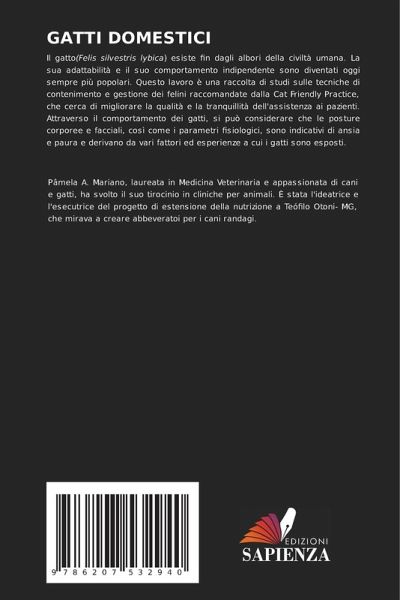 Il gatto(Felis silvestris lybica) esiste fin dagli albori della civiltà umana. La sua adattabilità e il suo comportamento indipendente sono diventati oggi sempre più popolari. Questo lavoro è una raccolta di studi sulle tecniche di contenimento e gestione dei felini raccomandate dalla Cat Friendly Practice, che cerca di migliorare la qualità e la tranquillità dell'assistenza ai pazienti. Attraverso il comportamento dei gatti, si può considerare che le posture corporee e facciali, così come i parametri fisiologici, sono indicativi di ansia e paura e derivano da vari fattori ed esperienze a cui i gatti sono esposti.
