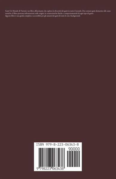 Gatti Un Mondo di Varietà è un libro affascinante che esplora la diversità dei gatti in tutto il mondo. Dai comuni gatti domestici alle razze esotiche, il libro presenta informazioni sulle origini, le caratteristiche fisiche e comportamentali di ogni tipo di gatto. Questo libro è una guida completa e accessibile per gli amanti dei gatti di tutte le età e background.