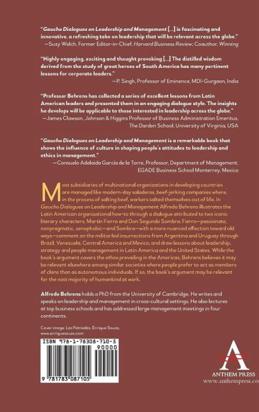 "Gaucho Dialogues on Leadership and Management" analyzes Latin American militias as organizations, highlighting the elements that best fit people who see themselves as members of groups-a description that fits the vast majority of the world. Among militias, loyalty largely overrides merit and can align a people into highly effective action, a characteristic that business organizations wish to promote.